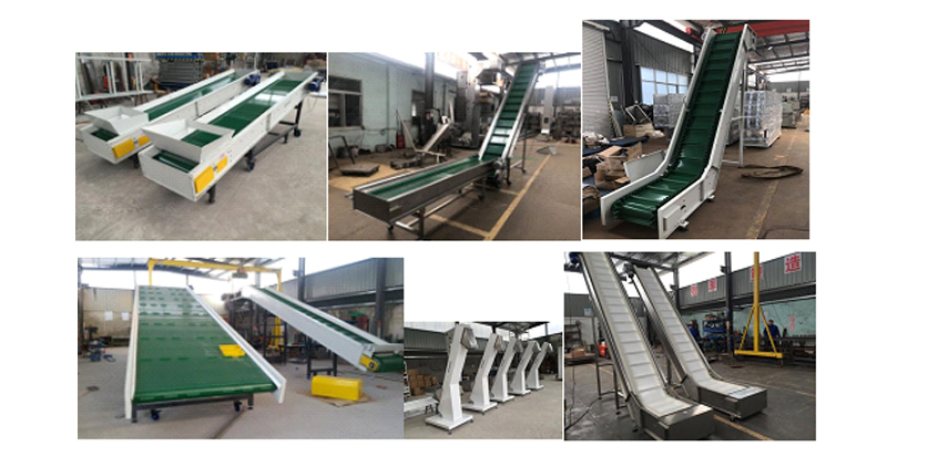 爬坡皮帶輸送機(jī)適用于樓層或高差間的貨物的連續(xù)輸送。傾斜角度?。?/font>≤30°)的爬坡皮帶機(jī),在皮帶上加裝檔條、治具、裙邊等方式從而使物體能在較大的角度上作提升輸送。具有效率高、輸送快、噪音低、不間斷等特點(diǎn)。特別適合小物料的輸送,如食品、注塑件、粉末以及各種零件行業(yè)。 用于上下樓層、斜坡地形、天橋等具有高差的平面之間的物品輸送。在某些情況下可以代替升降機(jī)使用。 在輸送顆粒狀物品時(shí)為防止物品因重力滾落,每隔一段距離可以加一塊擋板.裙邊皮帶輸送機(jī)通過(guò)在輸送帶上增設(shè)提升擋板、裙邊等附件,所有附件均采用高頻焊接,無(wú)縫接駁,采用尼龍機(jī)加工壓輪,是輸送帶運(yùn)行平穩(wěn),能滿(mǎn)足顆粒物以及粉體的提升工藝要求,廣泛應(yīng)用于食品、化工、醫(yī)藥等行業(yè)。